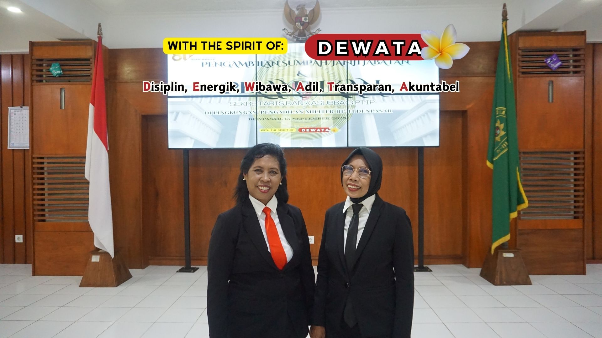 Acara berlangsung khidmat dan lancar. Ibu Katharina S.H. dilantik sebagai Sekretaris setelah sebelumnya menjabat Kasubbag PTIP sekaligus Plt. Sekretaris. Sedangkan Ibu Sri Susmawati, S.H. dilantik sebagai Kasubbag PTIP menggantikan Ibu Katharina, S.H. yang memperoleh promosi ke jabatan eselon III.
