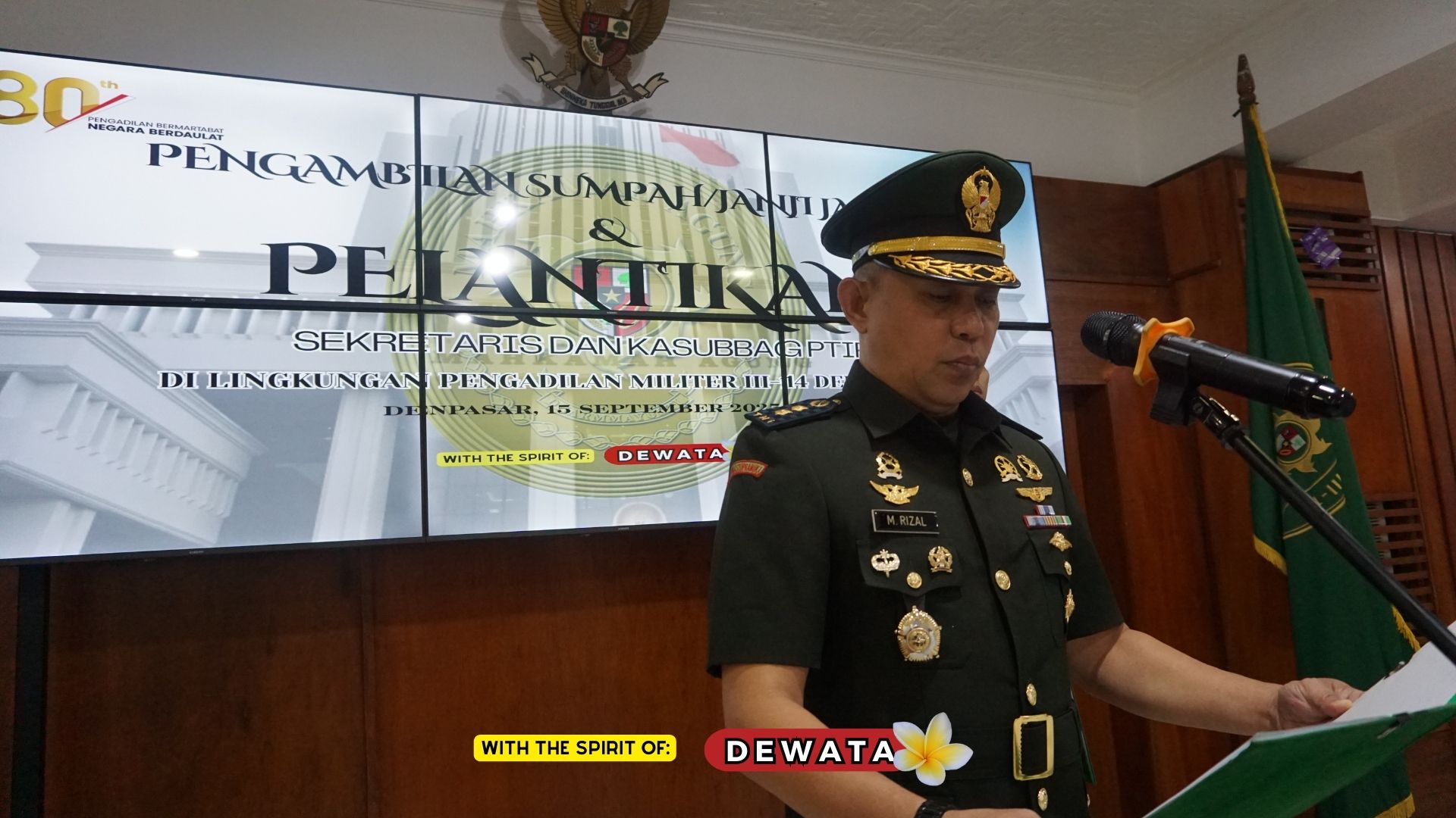 Denpasar – Kepala Pengadilan Militer III-14 Denpasar memimpin pengambilan Sumpah/Janji dan Pelantikan Sekretaris dan Kepala Subbagian PTIP yang dilangsungkan di Ruang Sidang Utama Dewata, Senin (15/09) siang.